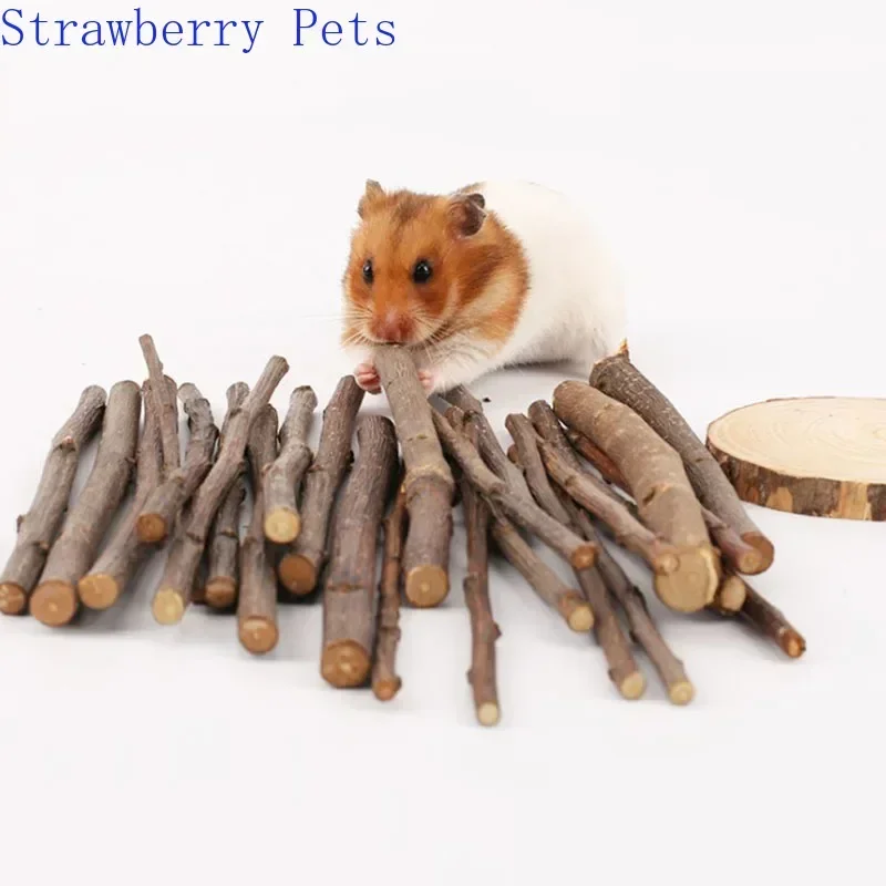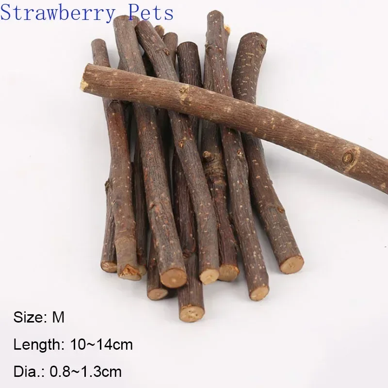 These natural apple tree chew sticks are safe and healthy toys for small pets. Made from real apple wood, they contain no chemicals or additives. Chewing helps grind teeth and supports proper dental health. The sticks are suitable for hamsters, squirrels, rabbits, and parrots. They encourage natural gnawing behavior and reduce boredom. Multiple quantity options allow long-term use and convenience. The natural texture provides satisfying resistance for chewing. These sticks also help prevent overgrown teeth in small animals. Lightweight size makes them easy for pets to hold and chew. They can be used in cages or play areas. Pet owners appreciate their simplicity and natural design. Overall, these apple wood chew sticks are a practical and beneficial toy for small pets.